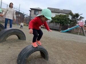 子どもたちの大好きな公園の1つ。タイヤ公園!