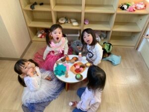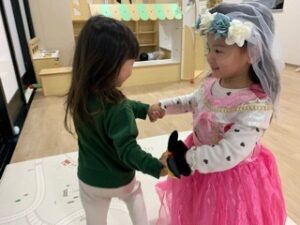 松が丘園 プリンセスな気分👸 2025.12.03 夕方プリンセスの衣装を着たい女の子たち ダンスをしたりみんなで順番に着ています☺️ ハイポーズ そのままおままごとでお茶会がはじまりました ごっこ遊びの世界を大切にしっかり遊び込める環境も大切ですね 海に行ってきました🪼 前の記事