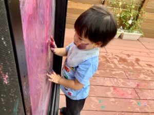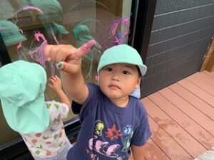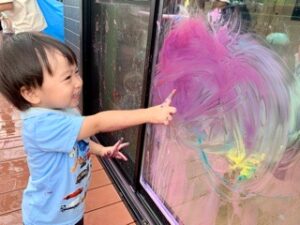 窓に描き描き〜と感触を楽しんでいる子の姿も🤭