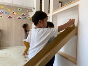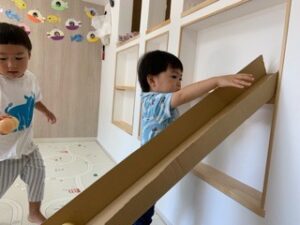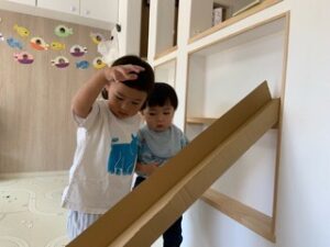 ダンボールでちょうど良い大きさを保育士が見つけました。
