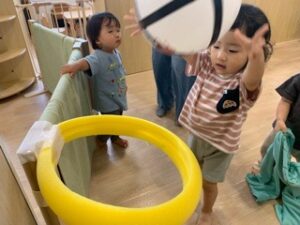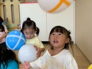 松が丘園 不思議だけど面白い💡 2025.09.18 2025.09.21 普段から遊んでいる風船 テープを貼って風船ボールにしてみました。 子どもたちの反応はどうかな? 思っていた以上に大好評でした あまりに跳ねるので「これ風船だよね?」と確認する子どもの声も バスケのようにゴール!入れる感覚が楽しくて何度もやったよ。 ボールが高く飛ぶので子どもたちはこんな表情 夢中になってたくさん体を動かしたよ。 楽しかったからまた遊ぼうね トンボのメガネ👓 前の記事 久しぶり💬 次の記事