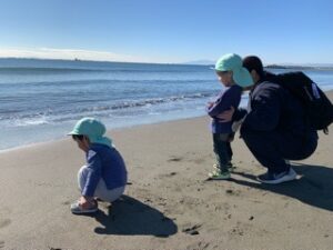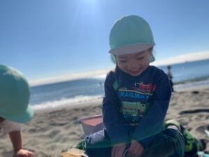 土曜保育のある日、天候も良かったので初めて海に行くことに。