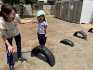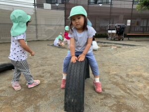 おっ!!バランス感覚素晴らしい!!遊びの中でバランス感覚も養われるのいいですね😊
