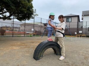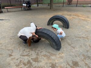 今や、懐かしい(?)タイヤが埋め込まれていて子どもたちも初めて行った時に大興奮でした。