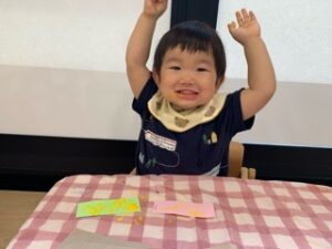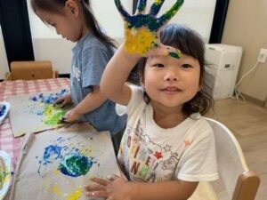 最後は手のひらで絵の具を混ぜて色の変化を楽しんだよ🟢