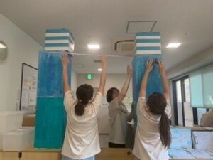 お祭りでのゲームやブースの小物を作ったよ。一つ一つが形になってきてお祭りを実感する毎日です。