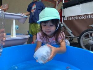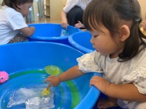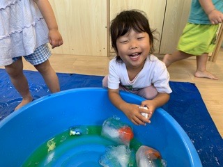 氷が少し溶けてきた、氷の変化にも目を離さずじっと観察